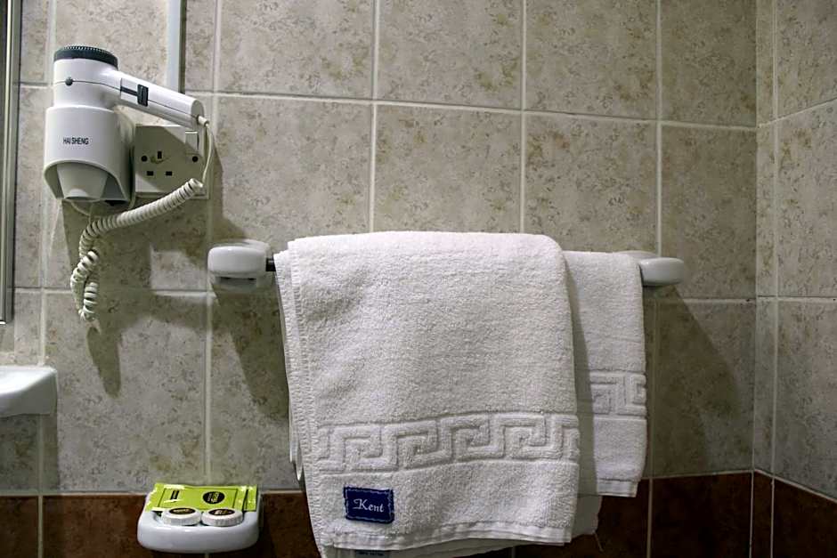 This air-conditioned room features a satellite TV, a fridge and a fan. The bathroom includes a hairdryer.